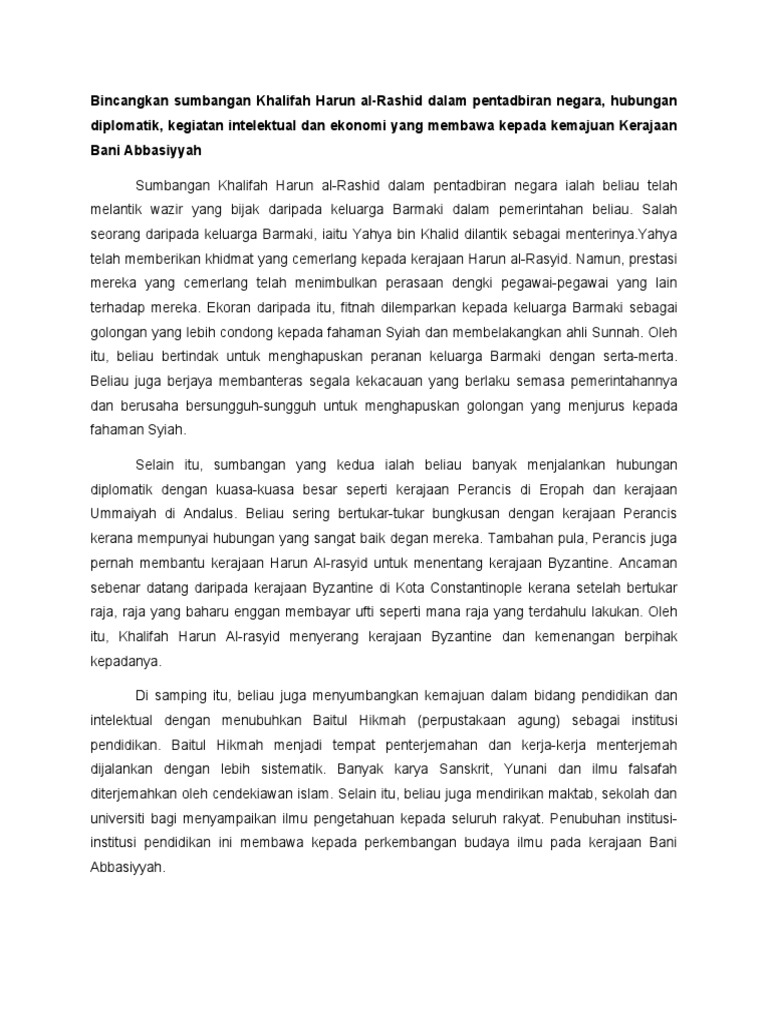 Sumbangan Khalifah Harun Al Rashid Pdf